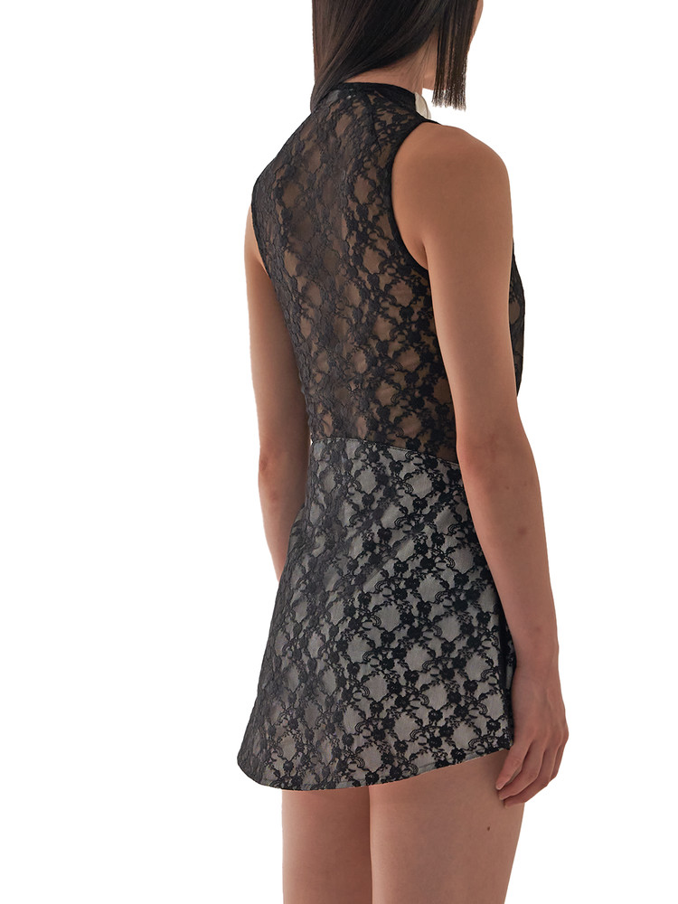 ― Floral lace dress with accented plastron on the front
