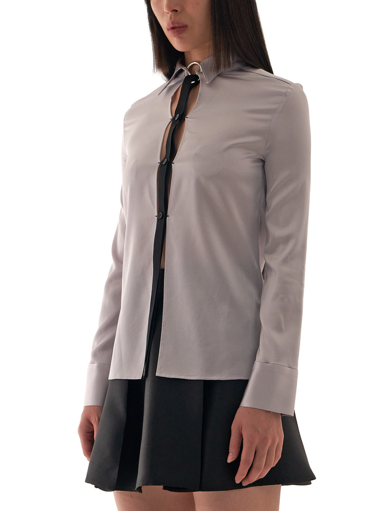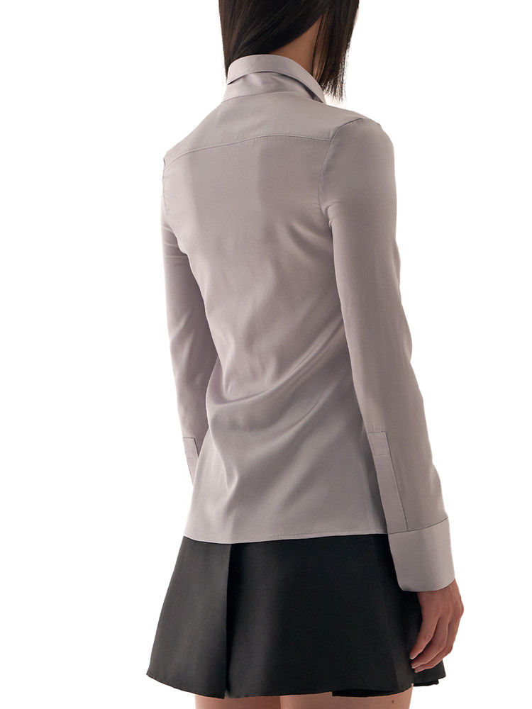 The front placket features adjustable slits, enhancing the satin silk's luxurious sheen. This shirt combines 2728®'s sensual mood with wearability, offering a sophisticated yet distinctive style.