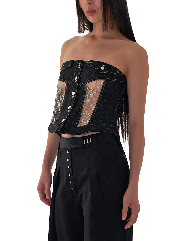 ― Lace tube top with trucker jacket detail