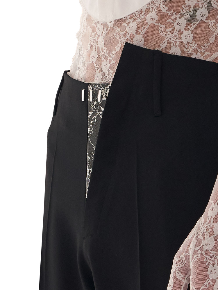 Featuring 2728®'s signature trouser design, these trousers highlight a slanted fly on the front, adorned with intricate Japanese floral lace. Crafted from luxurious and sturdy fabric using tailoring techniques, they offer a sophisticated and refined style.